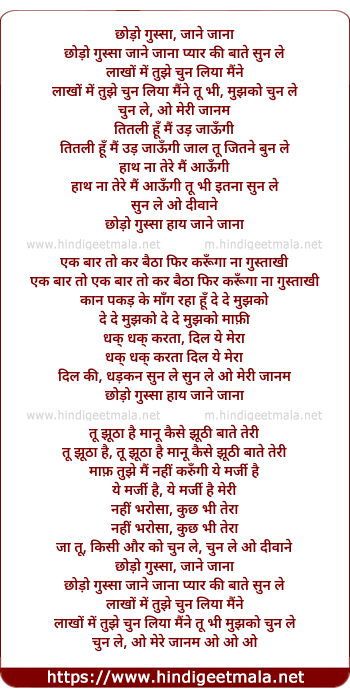Lyrics of Chhodo Gussa Jaane Jaana - छोड़ो गुस्सा जाने जाना
