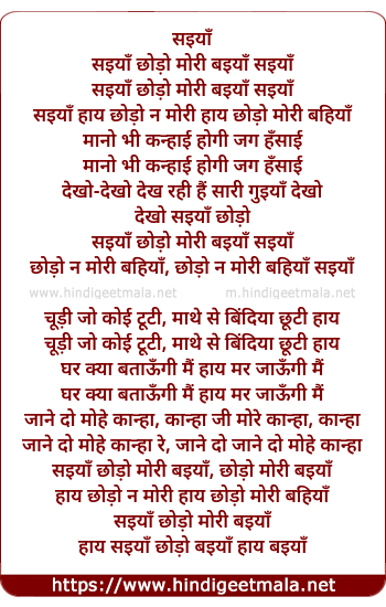 saiyaan chhodo na mori baiyaan, chhodo mori baiyaan