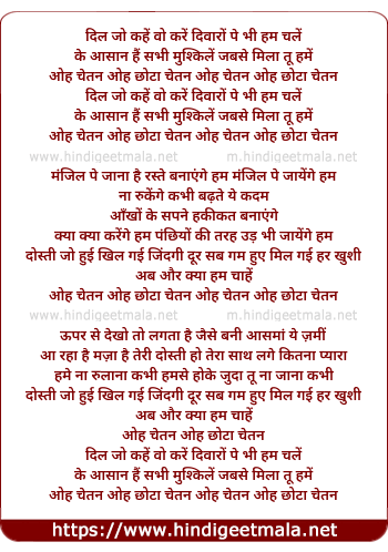 Lyrics of Chetan Oh Chota Chetan - चेतन ओह छोटा चेतन