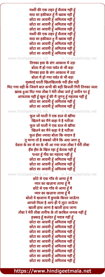 Lyrics of Chhota Sa Aadmi Hu - छोटा सा आदमी हूँ