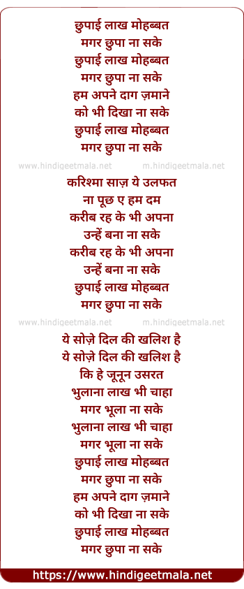 Lyrics of Chhupai Lakh Mohabbat - छुपाई लाख मोहब्बत