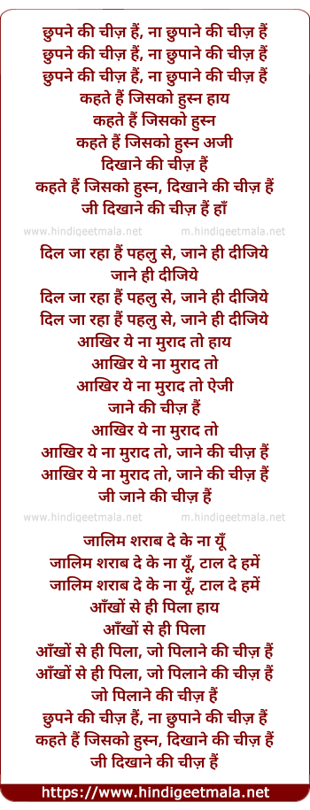 Lyrics of Chhupne Ki Cheez Hai - छुपने की चीज़ हैं, ना छुपाने की चीज़ हैं
