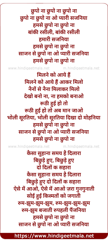 Lyrics of Chhupo Na Chhupo Na Chhupo Na - छुपो ना छुपो ना छुपो ना