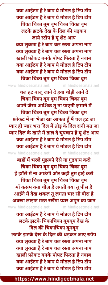 Lyrics of Chika Chika Boom - चिका चिका बूम