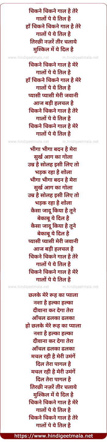 Lyrics of Chikne Chikne Gaal - चिकने चिकने गाल