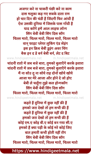 Lyrics of Chill Maro, Chandni Rato Me Jab Baje Barah - चिल्ल मारो, चांदनी रातो में जब बजे बारा