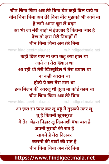 Lyrics of Chin China China Ab Tere Bina Chaain Kahin Dil Paae Na - चीन चिना चिना अब तेरे बिना चैन कही दिल पाये ना
