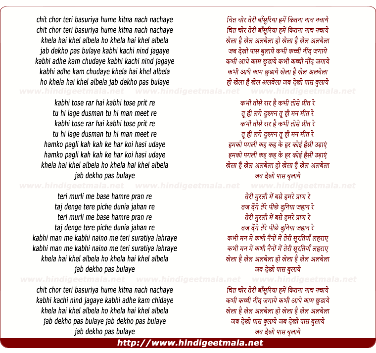 lyrics of song Chit Chor Teri Basuriya Hume Kitna Naach Nachaye