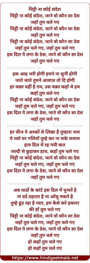 chitthi na koyi sandesh, jaane wo kaun sa des