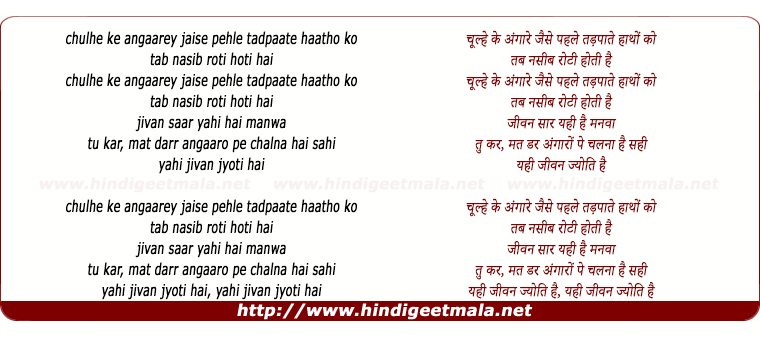 Lyrics of Choolhe Ke Angaarey - चूल्हे के अंगारे