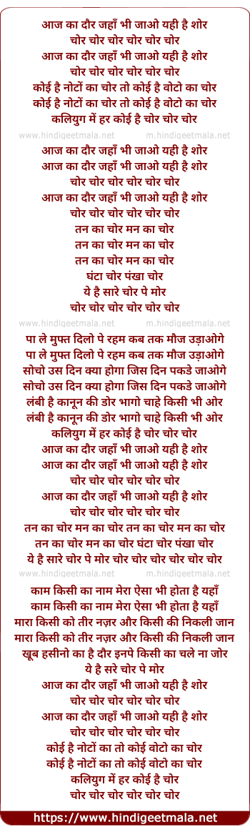 Lyrics of Chor Chor - चोर चोर