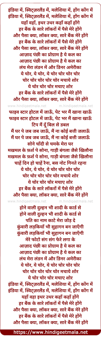 Lyrics of Chor Machaye Shor - चोर मचाये शोर