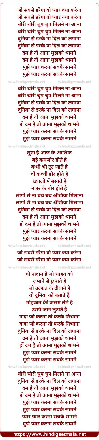 Lyrics of Mujhe Pyar Karna Sabke Samne - मुझे प्यार करना सबके सामने
