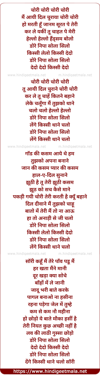 Lyrics of Chori Chori Chori - चोरी चोरी चोरी