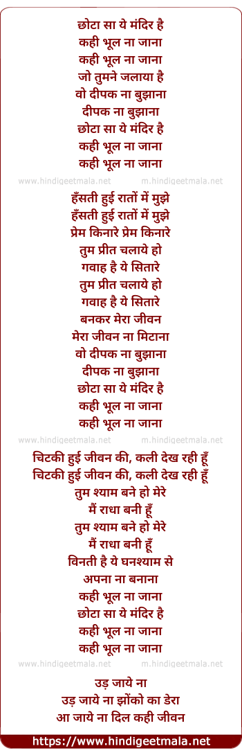 Lyrics of Chota Sa Ye Mandir Hai - छोटा सा ये मंदिर है