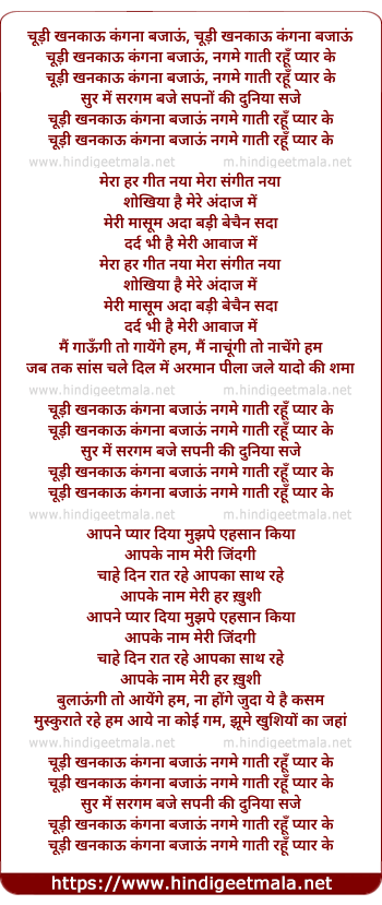 Lyrics of Chudi Khankau Kangana Bajau - चूड़ी खनकाऊ कंगना बजाऊं
