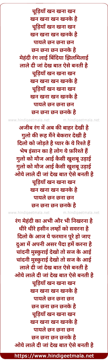 Lyrics of Chudiya - चूड़ियाँ