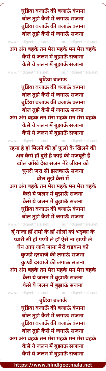 Lyrics of Chudiyaan Bajaaun Ki Bajaaun Kanganaa - चुडिया बजाऊँ की बजाऊं कंगना