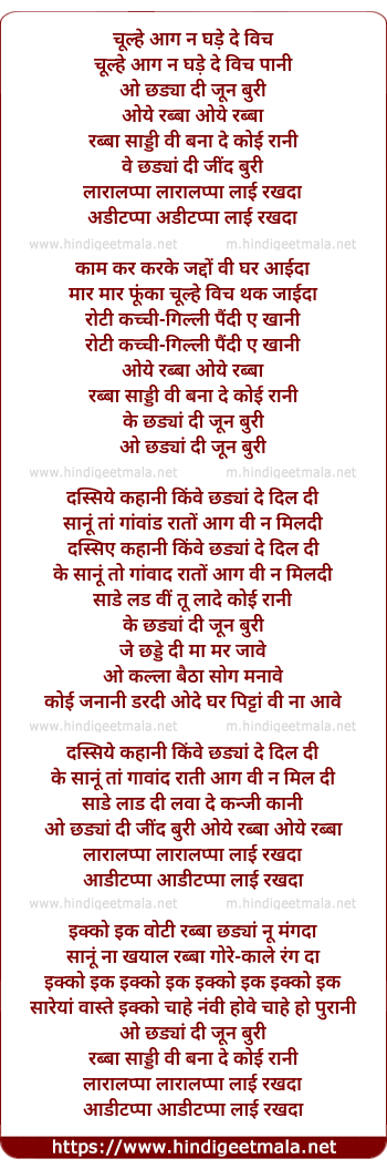 Lyrics of Chulle Agg Na - चूल्हे आग न