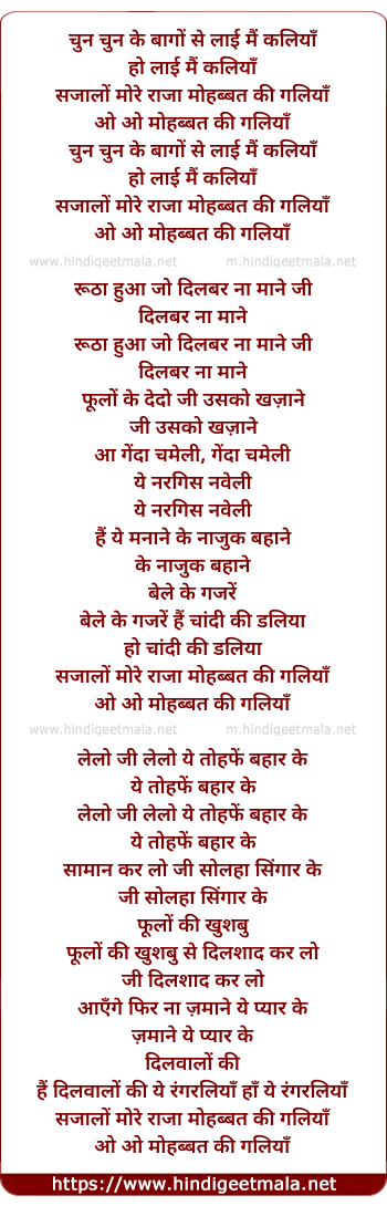Lyrics of Chun Chun Ke Baago Se Laayi Mai Kaliya - चुन चुन के बागों से लाई मैं कलियाँ