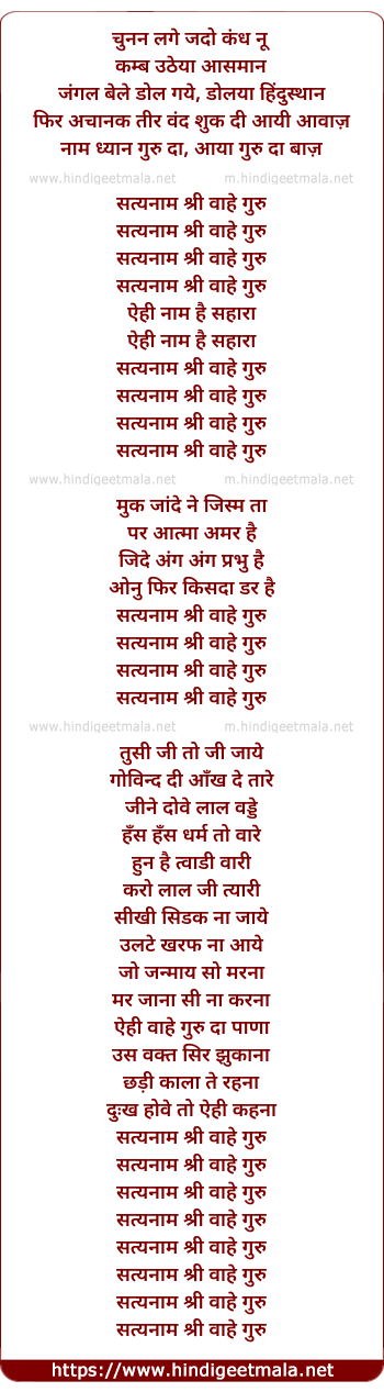 Lyrics of Chunan Lage Jado - चुनन लगे जदो कंध नू
