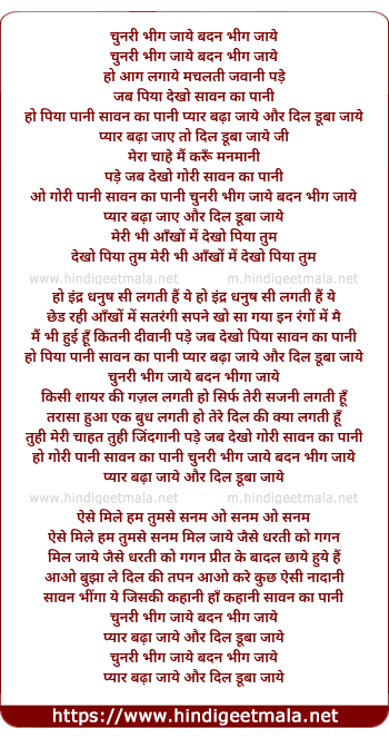Lyrics of Chunari Bheeg Jaaye - चुनरी भीग जाये