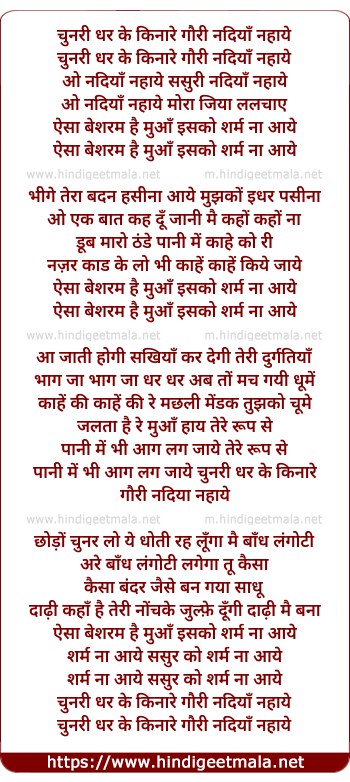 Lyrics of Chunari Dhar Ke Kinare Gori - चुनरी धर के किनारे गौरी