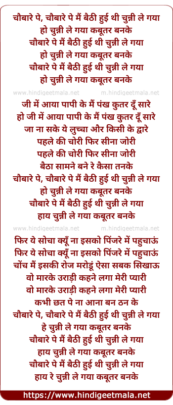 chaubaare pe, chaubaare pe mai baithi huyi thi chunni le gaya