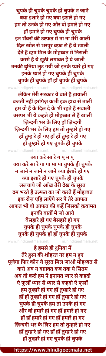Lyrics of Chup Ke Hi Chup Ke - चुपके ही चुप के