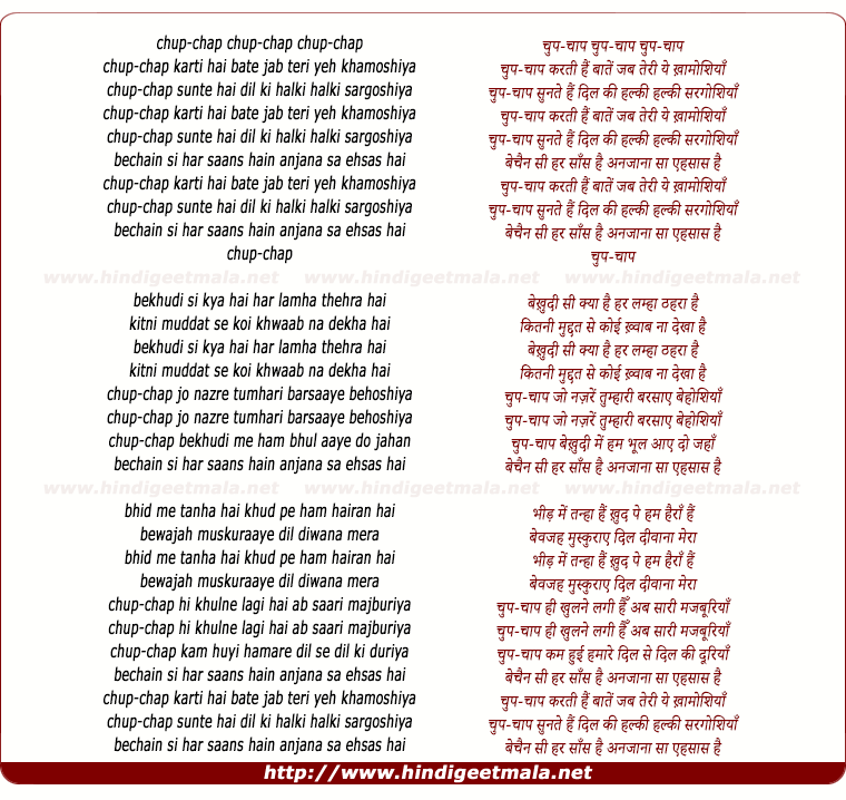 Lyrics of Chupchap Chupchap Chupchap - चुपचाप चुपचाप चुपचाप