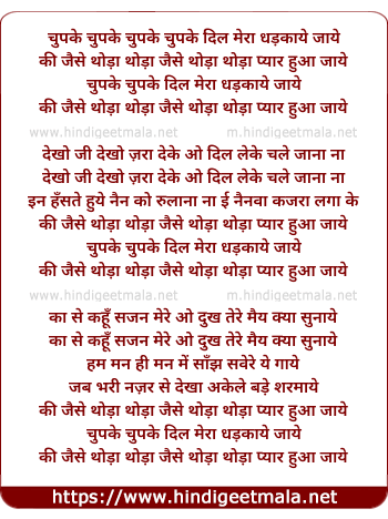 Lyrics of Chupke Chupke Dil Mera - चुपके चुपके दिल मेरा