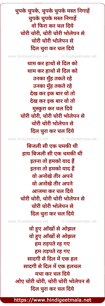 Lyrics of Chupke Chupke Mast Nigahe - चुपके चुपके, चुपके चुपके मस्त निगाहें