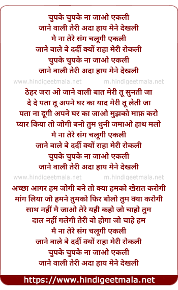 Lyrics of Chupke Chupke Na Jaoo Tum Akeli