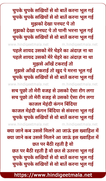 Lyrics of Chupke Chupke Sakhiyo Se Wo Baate Karna Bhul Gayi - चुपके चुपके सखियों से वो बातें करना भूल गई