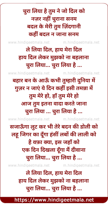 Lyrics of Chura Liya Hai Tum Ne Jo Dil Ko - चुरा लिया है तुम ने जो दिल को