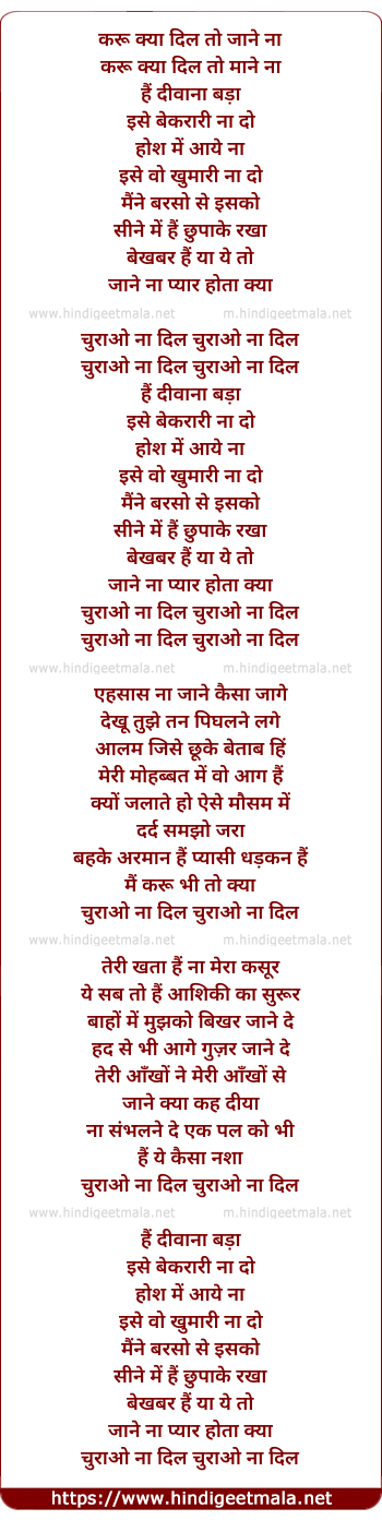 Lyrics of Churao Na Dil - चुराओ ना दिल