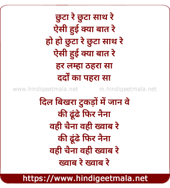 Lyrics of Chuta Re Chuta (Male) - छुटा रे छुटा साथ रे