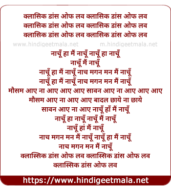Lyrics of Classic Dance Of Love, Nachu Mai Nachu - क्लासिक डांस ऑफ़ लव, नाचूँ मैं नाचूँ