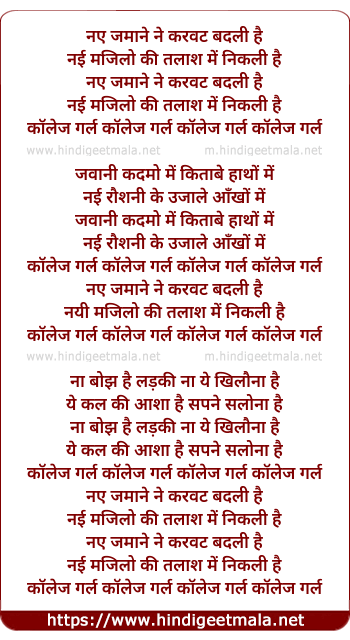 Lyrics of College Girl College Girl - कॉलेज गर्ल कॉलेज गर्ल