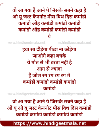 Lyrics of Commando (Title Track) - कमांडो