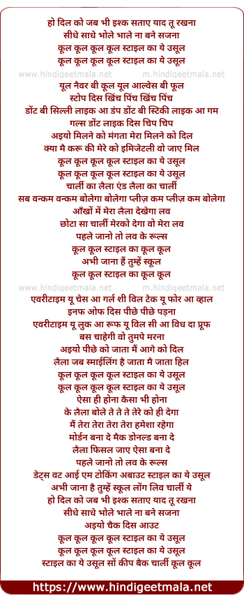 Poetic Translation - Lyrics of Cool Cool - कूल कूल