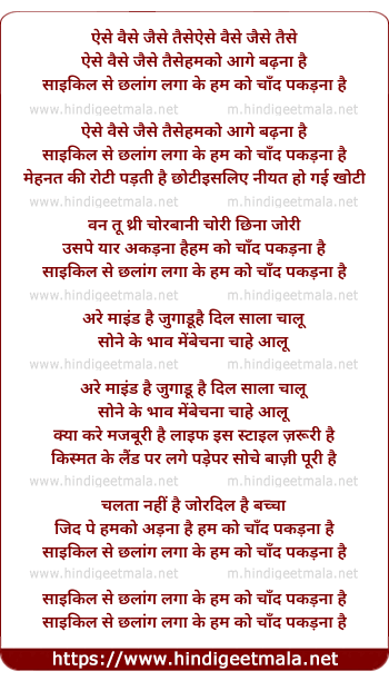 Lyrics of Cycle Se Chalaang - साइकिल से छलांग