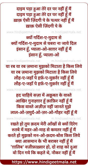 Lyrics of Daaim Padaa Huaa Tere Dar Par Nahin Hun Main - दाइम पड़ा हुआ तेरे दर पर नहीं हूँ मैं