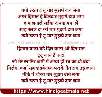 Lyrics of Daav Lagaa - क्यों डरता है तू यार मुझपे दाव लगा