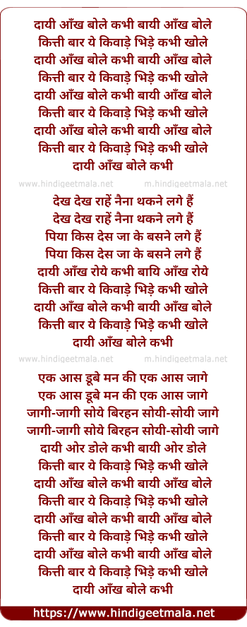 Lyrics of Daayi Aankh Bole Kabhi Baayi Aankh Bole - दायी आँख बोले कभी बायी आँख बोले