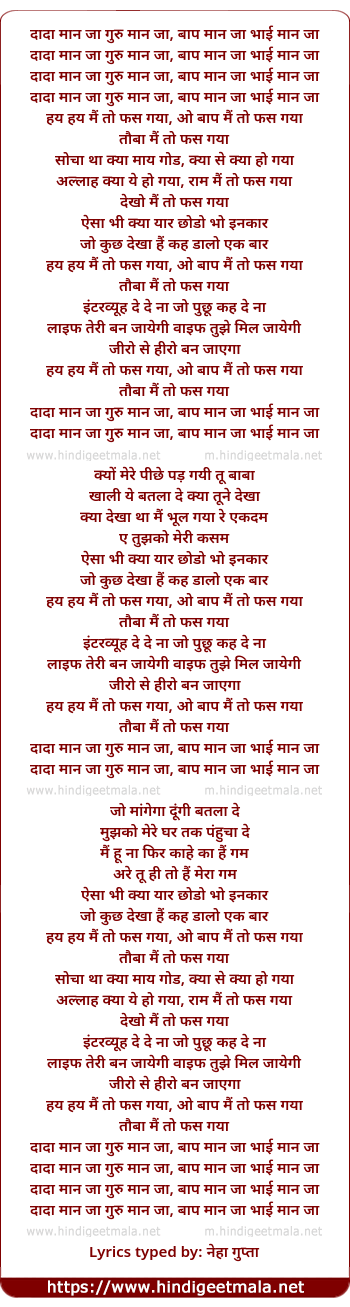 Lyrics of Dada Man Ja Guru Man Ja - दादा मान जा गुरु मान जा