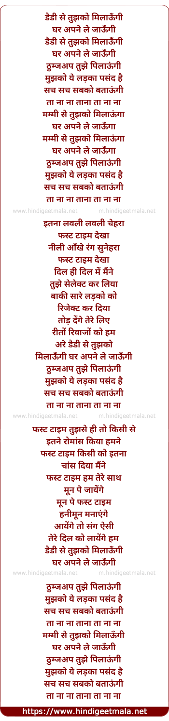 Lyrics of Daddy Se Tujhko Milaoongi - डैडी से तुझको मिलाऊँगी
