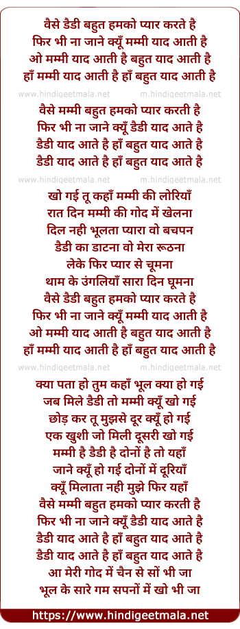 Lyrics of Daddy Yaad Aate Hai - डैडी याद आते है