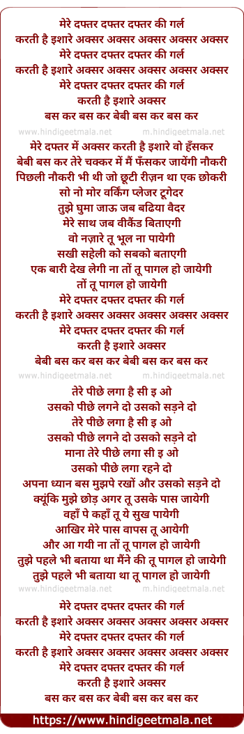 Lyrics of Daftar Ki Girl - दफ्तर की गर्ल