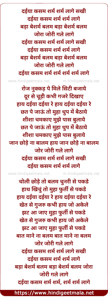 Lyrics of Daiya Kasam Sharam Sharam Laage - दईया कसम शर्म शर्म लागे